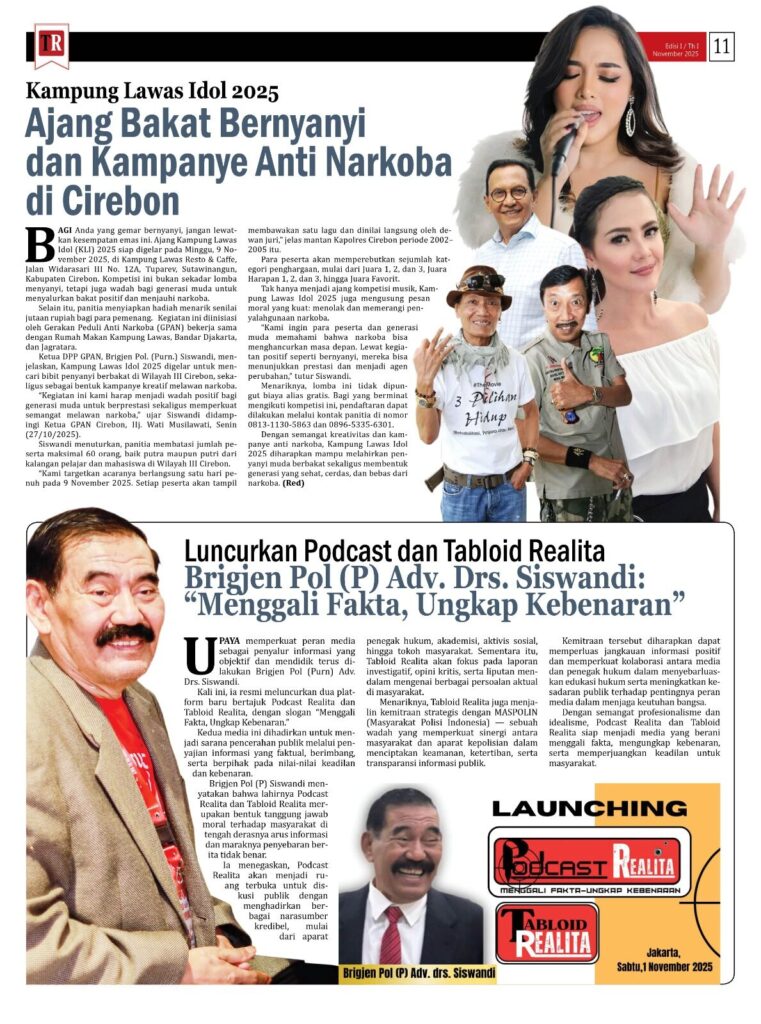 Brigjen Pol (P) Adv. Drs. Siswandi Luncurkan Podcast dan Tabloid Realita: “Menggali Fakta, Ungkap Kebenaran”